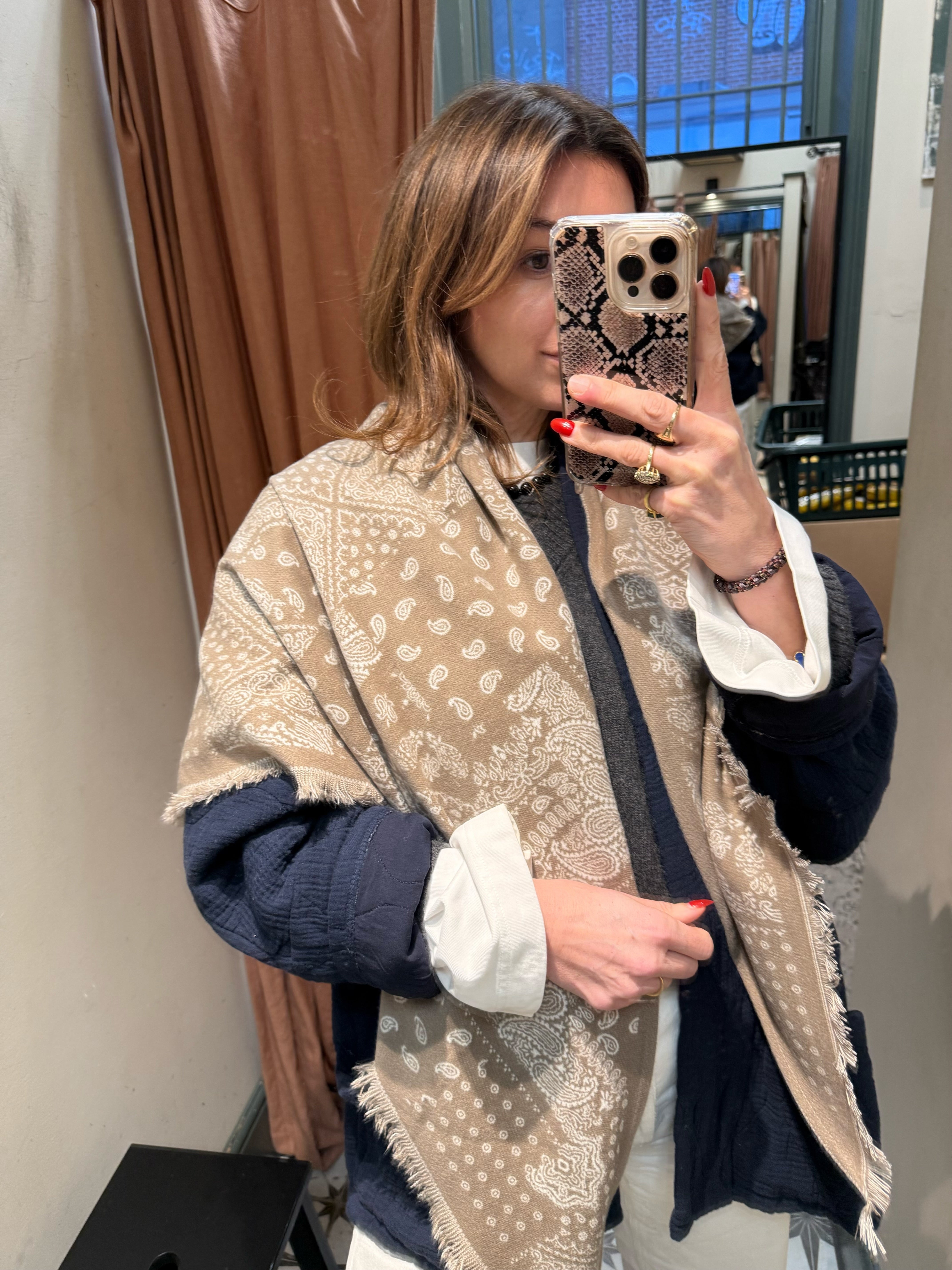 Give your outfit an instant boost with our new bandana triangle scarf. Designed to keep you warm and is the perfect layering piece over your jacket and knitwear. We have cut this new style in a triangle shape, to ensure it drapes perfectly over your shoulders for an on trend look but still ties neatly at the neck for a more classic look.