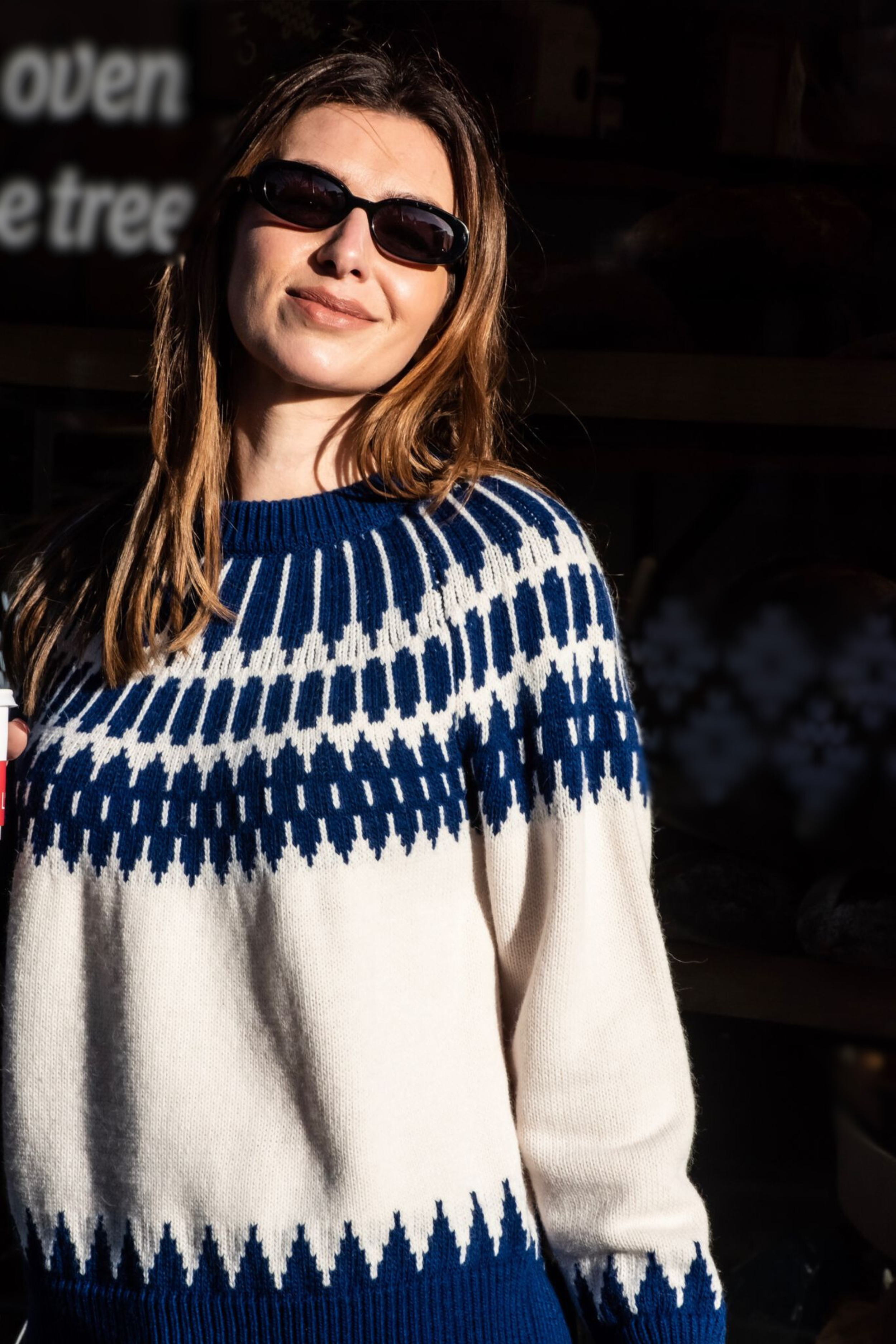 Part of the first drop of the Libby Loves Pre-Spring 26 collection, the Alpine Jumper is ideal for skiing this season. It showcases a bold, Fair Isle-inspired geometric pattern encircling the neckline. The hem and cuffs feature a saw-tooth colour block design that mirrors the yoke pattern. The fit makes it perfect for wearing over a collared shirt or under a winter coat with leggings and high boots.